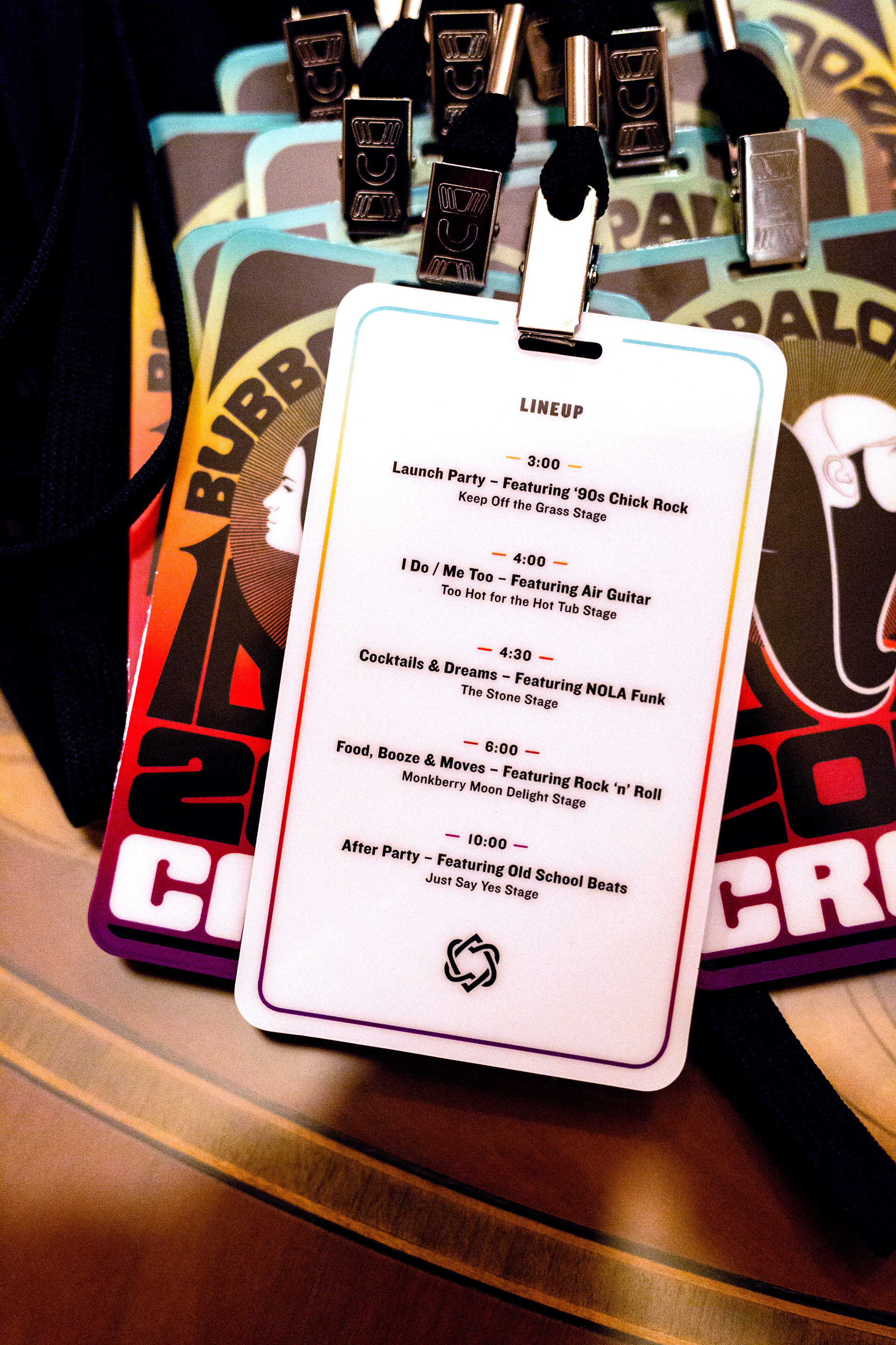Invitation and other collateral for our music festival-themed wedding – Fillmore West meets Bonnaroo. Custom psychedelic lettering carried through all signage and collateral, as well as an updated version of Leonard Cohen's mark for the "Order of the Unified Heart." As we both have a real tattoo of the design, we gave everyone temporary tattoos to match.
