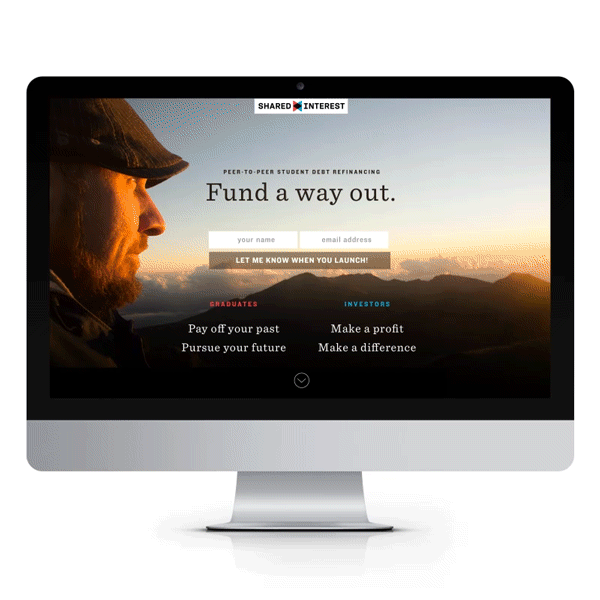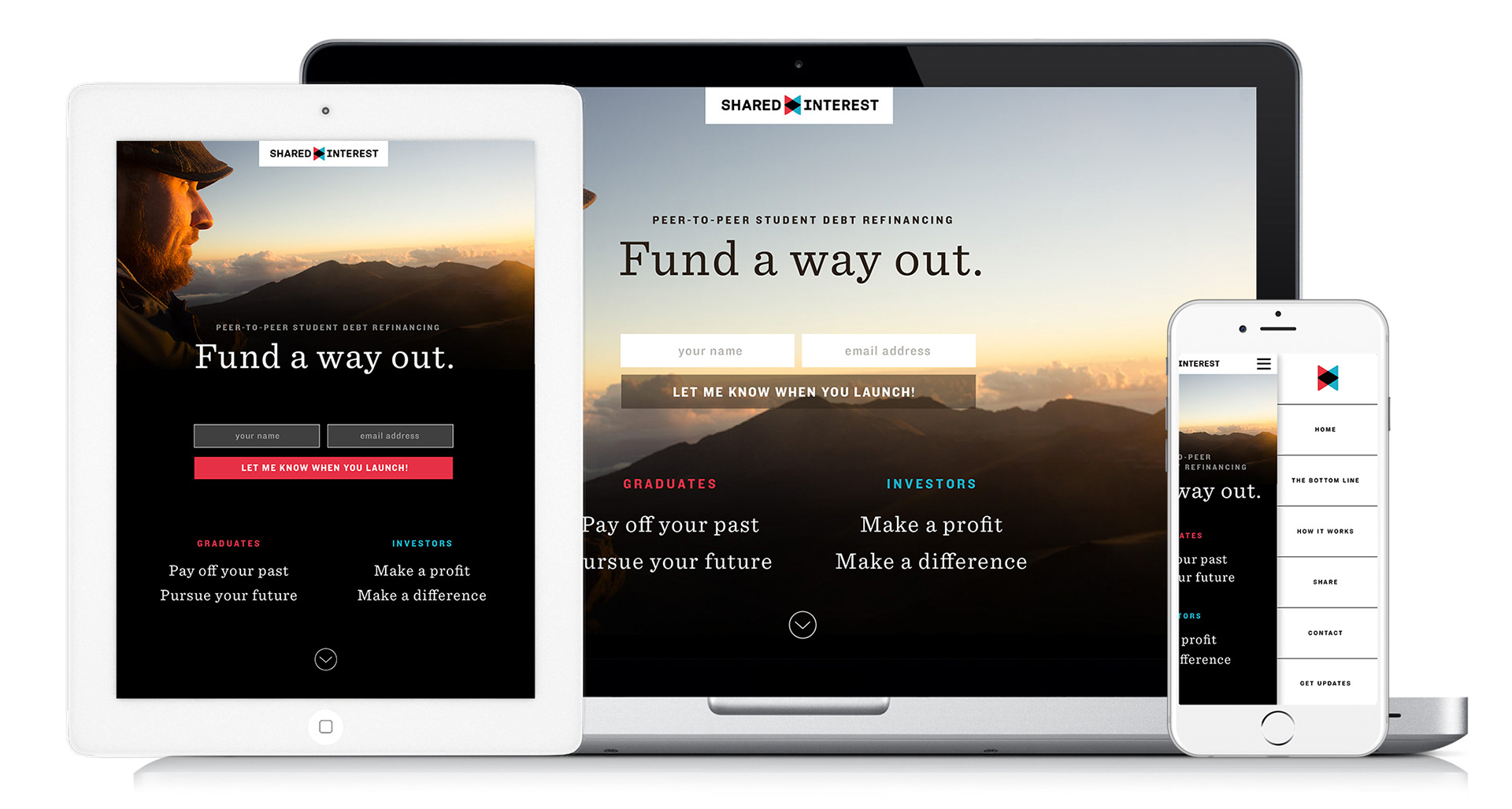 Responsive launch site for my MFA Design thesis/venture, Shared Interest. Full experience at sharedinterest.com.
